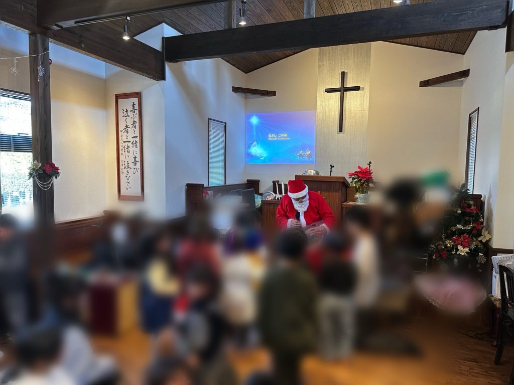サンタさんも来てくれて、子どもたちはプレゼントをもらって大喜び!ゲームや、賛美、美味しい食事の中で、今年もイエス様の御降誕をお祝いすることができました。